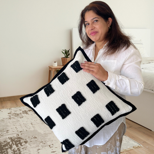 Premium Chenille Tufted Throw Pillow Cover - Black and White