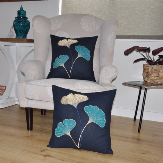Gingko Leaf Pattern Embroidered Throw Pillow Covers